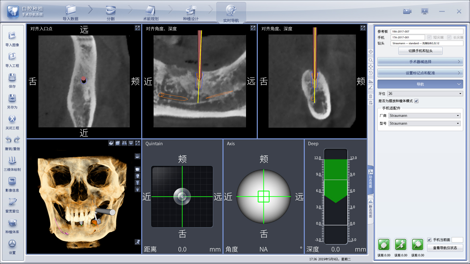 這三種種植方式各有利弊,自由手種植需要憑借醫(yī)生的種植經(jīng)驗(yàn),帶有一定的盲目性和主觀性,導(dǎo)板種植在種植方面降低了難度,但同樣存在影響種植精確度的問題,且存在一些潛在的風(fēng)險(xiǎn),例如:導(dǎo)板折斷、導(dǎo)環(huán)脫落、因設(shè)計(jì)制作誤差導(dǎo)致導(dǎo)板引導(dǎo)錯(cuò)誤等;數(shù)字化動(dòng)態(tài)導(dǎo)航種植是在數(shù)字化導(dǎo)板引導(dǎo)種植外科的基礎(chǔ)上發(fā)展起來的,是一種將空間立體導(dǎo)航技術(shù)、計(jì)算機(jī)圖像處理、可視化技術(shù)與臨床種植外科技術(shù)結(jié)合起來的技術(shù),更加精準(zhǔn)、微創(chuàng)、安全、高效。