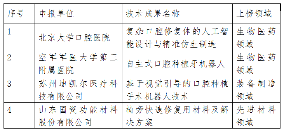 口腔醫(yī)學(xué)領(lǐng)域上榜2021“科創(chuàng)中國”先導(dǎo)技術(shù)榜名單