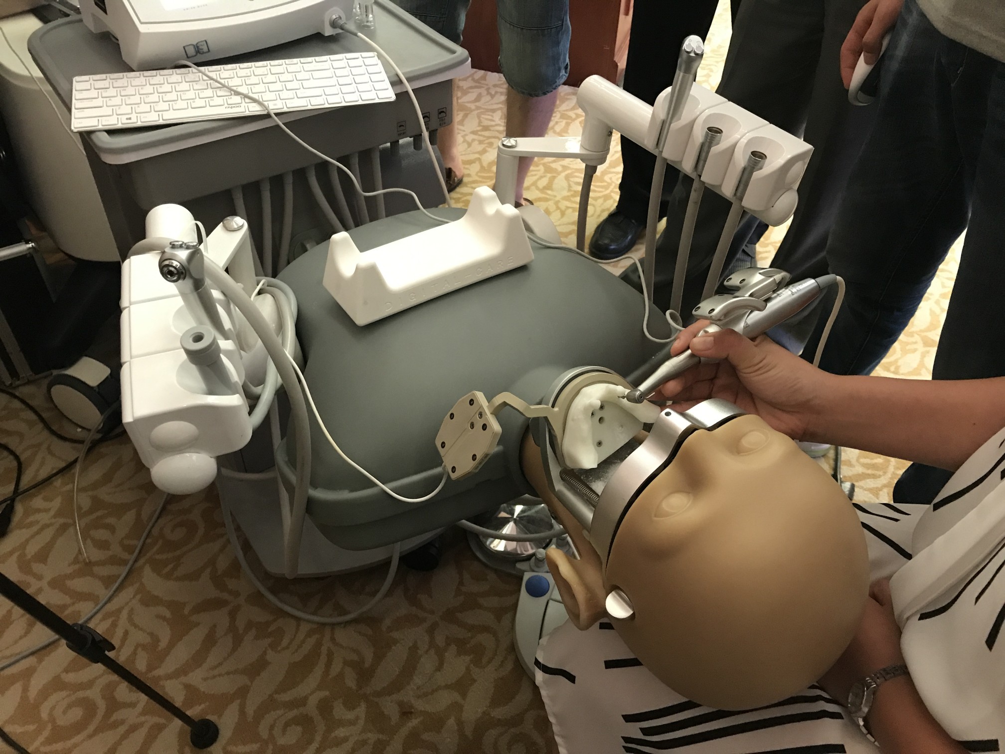 臺下觀眾使用易植美現(xiàn)場操作,體驗牙種植動態(tài)導(dǎo)航