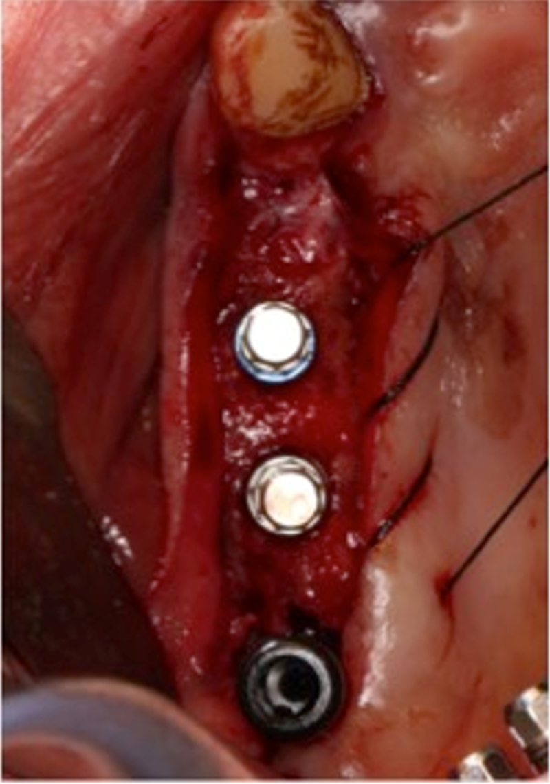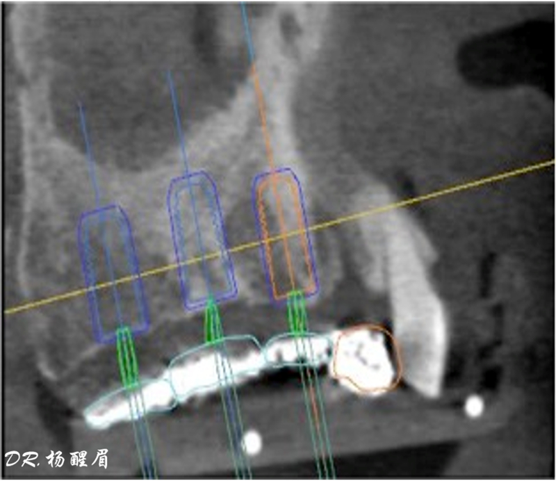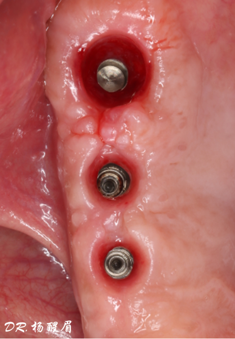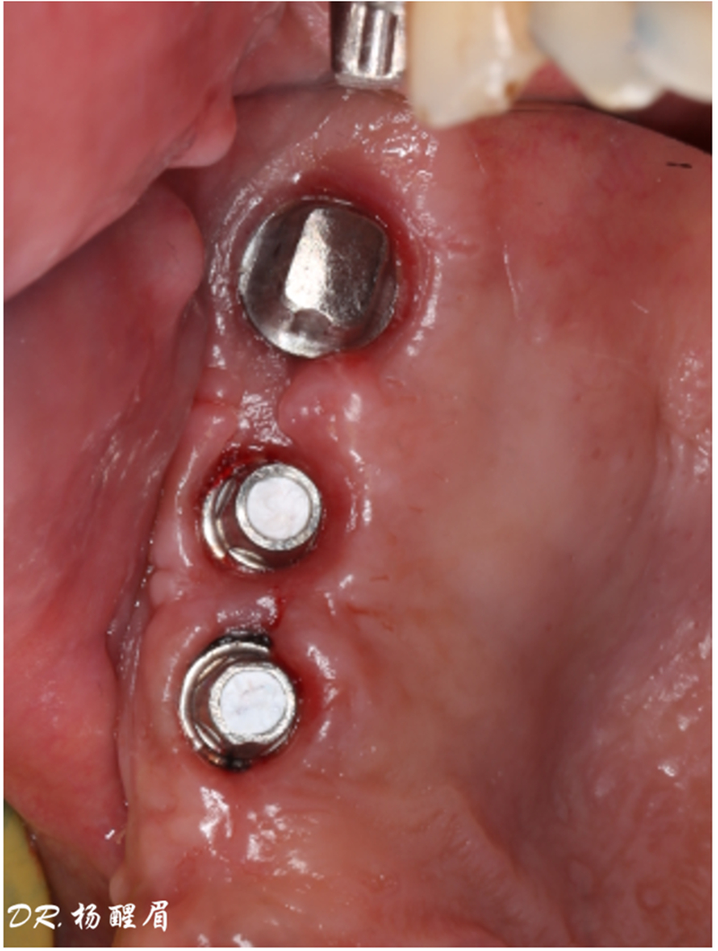 ®完成3顆植體的植入,植體位點如術前方案設計,均在同軸線。