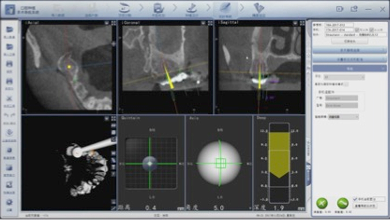 ®使用迪凱爾易植美導航軟件進行方案設計,確定種植體使用方案,以及種植位點,方向和深度