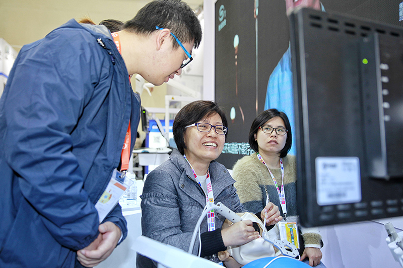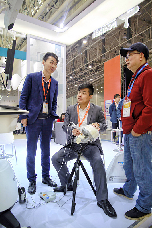展會(huì)第一天,專家蒞臨迪凱爾醫(yī)療展臺(tái),與迪凱爾工作人員詳細(xì)交流兩款明星產(chǎn)品,并給予了贊揚(yáng)與肯定。