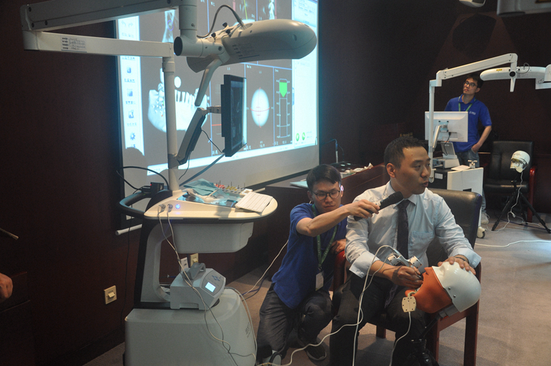 是迪凱爾團(tuán)隊(duì)展位展示的融入AR智能眼鏡+智能語音互動2項(xiàng)全新功能——迪凱爾數(shù)字化口腔種植手術(shù)導(dǎo)航系統(tǒng)!
