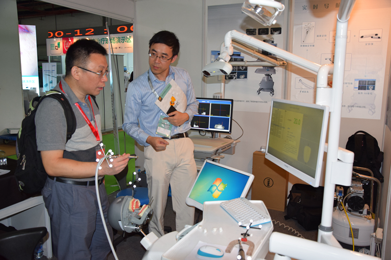在展會上,我們公司自主研發(fā)的齒科實時訓練及評估系統(tǒng)以及阿波羅口腔種植手術導航系統(tǒng)得到了各級口腔醫(yī)院及診所負責人的廣泛關注和認可。我們的技術團隊給蒞臨我們展位的各類專家詳細介紹了我們產品的功能和技術實現(xiàn)后,常州口腔醫(yī)院的謝主任、武大口腔醫(yī)學院的蔣主任等多位專家親自體驗了我們的產品,大家都認為我們的產品技術優(yōu)勢明顯,市場前景廣闊。